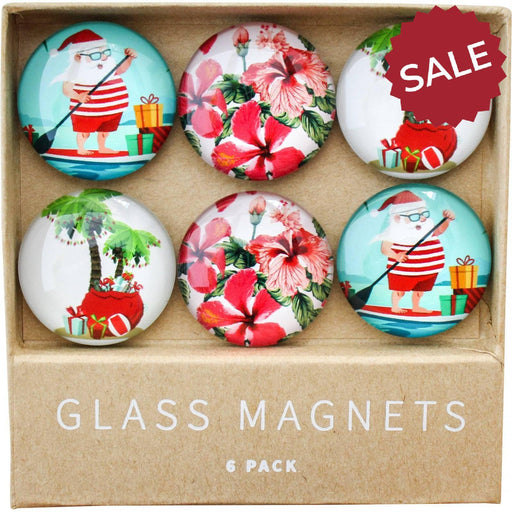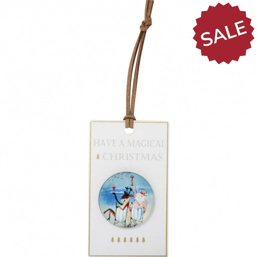 Christmas Gift Magnet – Summer Santa Box Glass Ornament | Festive Hanging Decoration & Fridge Magnet