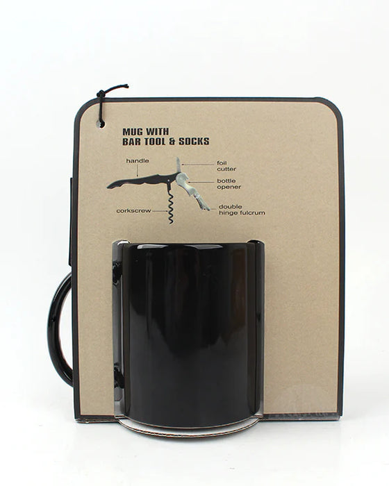 Novelty Mug + Sock + Bar Multitool Gift Set — “May Contain Alcohol”