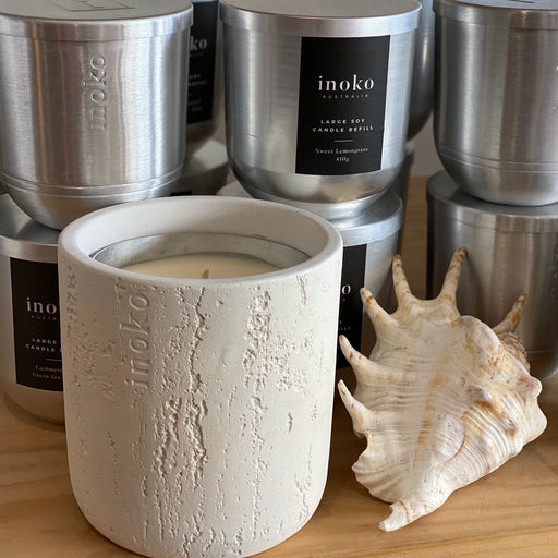 Inoko Australia Candle Vessel & Two Candle Refills - Concrete Rustic (Large)