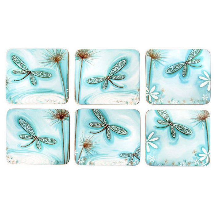 Bring colour and elegance to your dining table with the Cinnamon Blue Dragonfly Dreams Coasters – Set of 6. Designed in Australia by Lisa Pollock (Art From The Heart), these beautiful coasters feature vibrant dragonfly artwork that brightens up any setting while protecting your table.