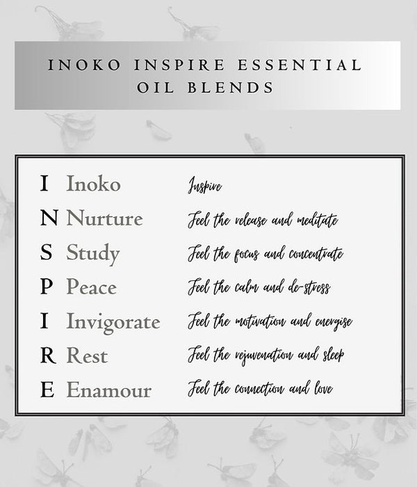 Elevate your space with Peace, a carefully crafted essential oil blend from Inoko, designed to soothe the mind and deepen relaxation. Each blend in the Inoko line is formulated not only for aroma but for ambiance — ideal for use in your Inoko diffuser or in a classic oil burner.