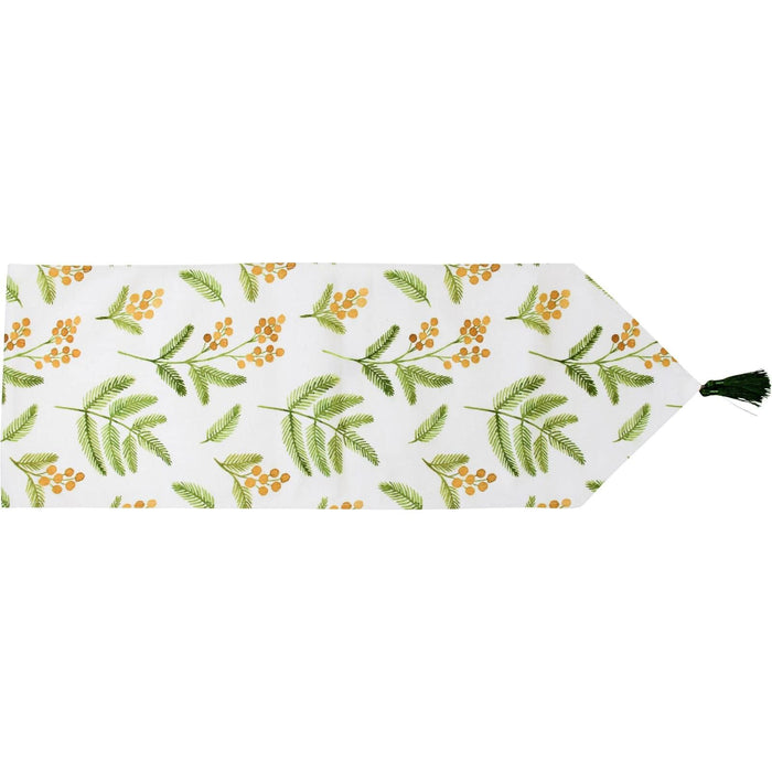 The Table Runner Mimosa presents a lovely challenge to every host, hostess, chef, events planner, and every other person who intends to decorate spatial settings, especially when food and party are involved. The challenge this table runner presents is a simple one for those who are not so creative in decoration, but a complex one for the multi-talented decorators as it can be employed in tens of decorative ways given its bright mimosa plant motif.